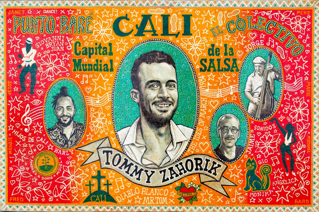 The Zahoriks commissioned Jon to create a painting of Tommy Zahorik, highlighting his years living in Cali, Colombia where he helped start a Latin Jazz bar, Punto Baré. The painting was shown at the show, along with other pieces Jon has created. Mike talked with Jon about the background of the painting and talked about a visit family and friends made to Cali in February when the painting was presented and hung at Punto Baré.
