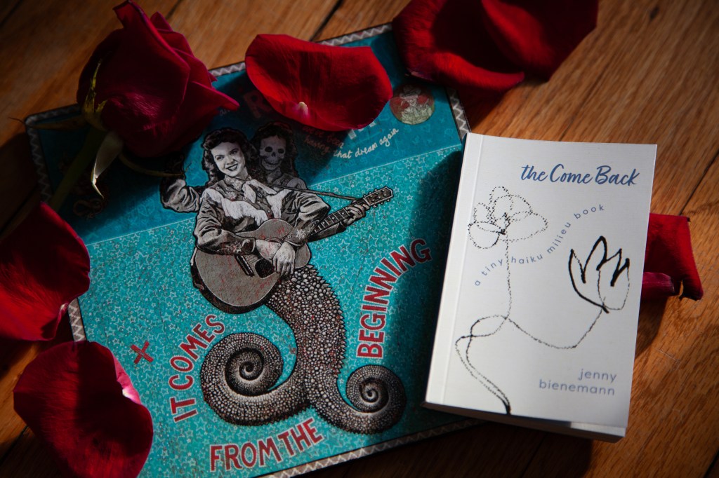 Mike and Jenny talked about her Haiku Milieu series and her new tiny book of haikus and images, “The Come Back.” Jenny’s haikus have led to collaborations with many artists (including Jon).